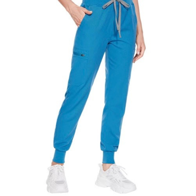 Lake Blue modern jogger-style pants are the perfect blend of comfort and fashion, featuring ribbed ankles for a trendy touch. Designed for versatility, these pants come with a convenient waist drawstring, allowing you to easily adjust the size for a personalized fit. With 8 pockets total including a secure zip cargo pocket on the right you can keep your essentials close at hand while while on the go. Ideal for both casual outings and lounging at home, these jogger pants elevate any wardrobe with their stylish aesthetic and practical features. Whether you’re in clinical settings or working from home, our scrubs will help pursue your goals in style.