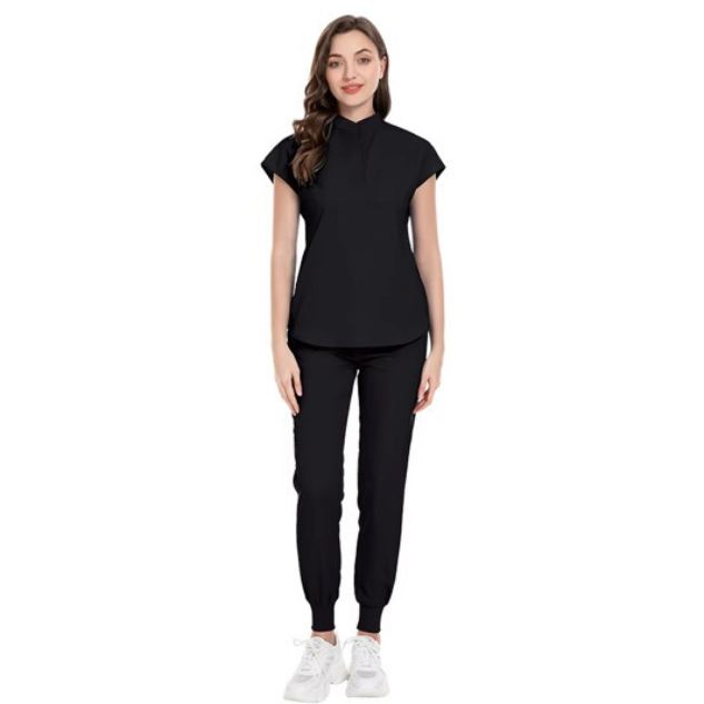 Black jogger-style pants are the perfect blend of comfort and fashion, featuring ribbed ankles for a trendy touch. Designed for versatility, these pants come with a convenient waist drawstring, allowing you to easily adjust the size for a personalized fit. With 4 pockets total you can keep your essentials close at hand while on the go. Ideal for both casual outings and lounging at home, these jogger pants elevate any wardrobe with their stylish aesthetic and practical features. Whether you’re in clinical settings or working from home, our scrubs will help pursue your goals in style.